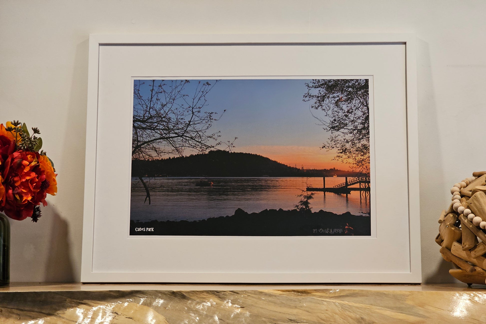 Print is 13" x 19" and is matted and framed in a 19" x 25" gallery quality white wood frame.